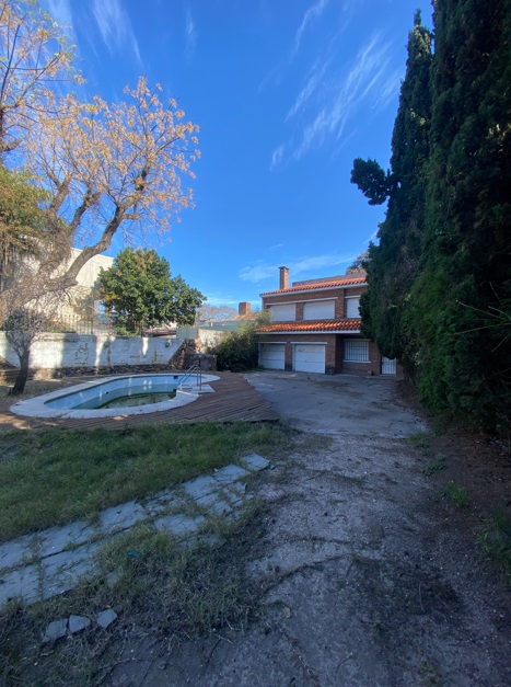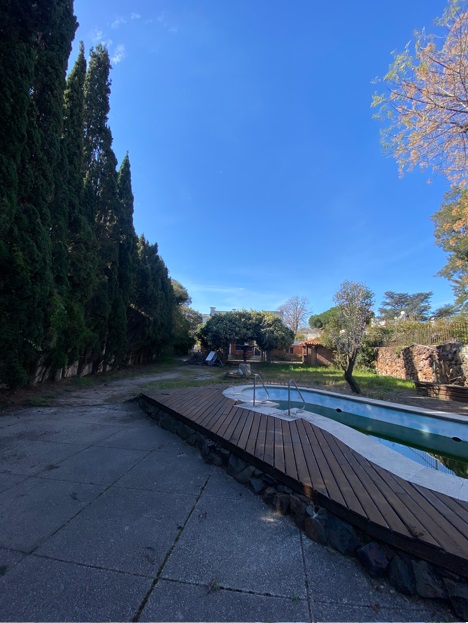 AMPLIO FONDO VERDE CON PISCINA, BARBACOA Y ÁREA DE GARAJE Y LAVADERO.