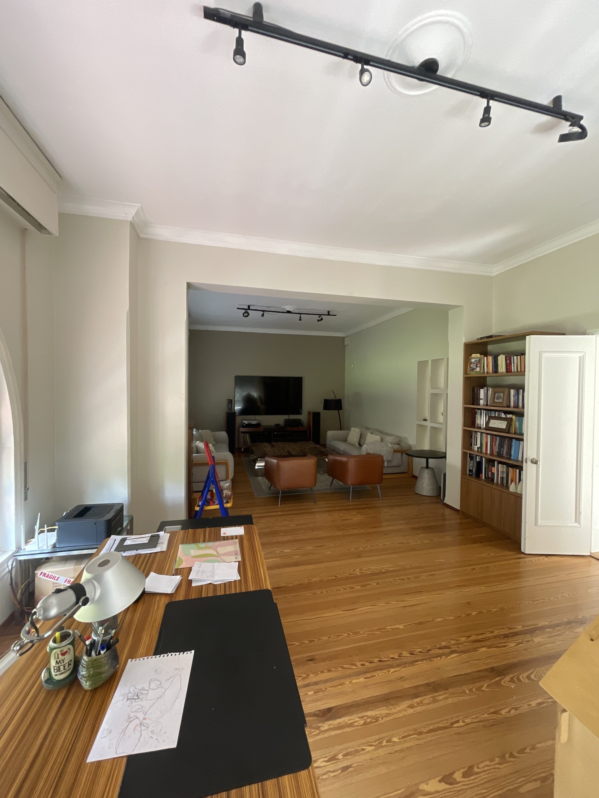 LIVING Y COMEDOR PRINCIPAL, CON VENTANALES EN MADERA.
