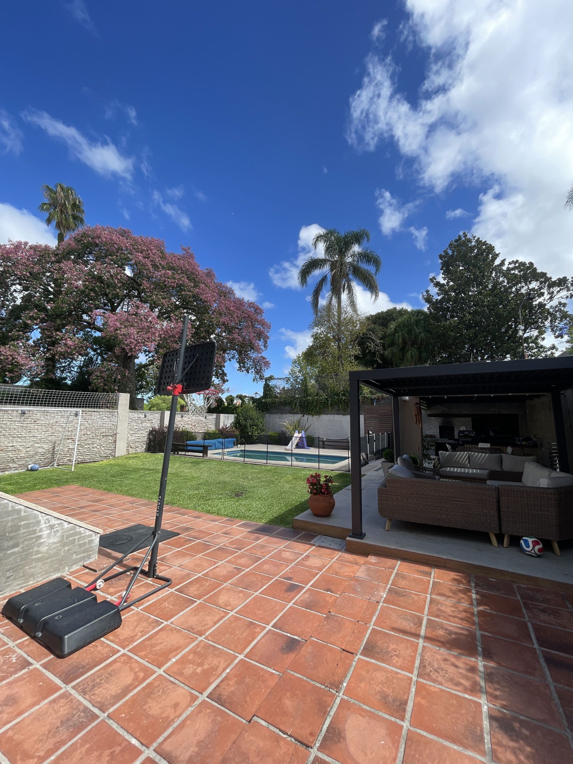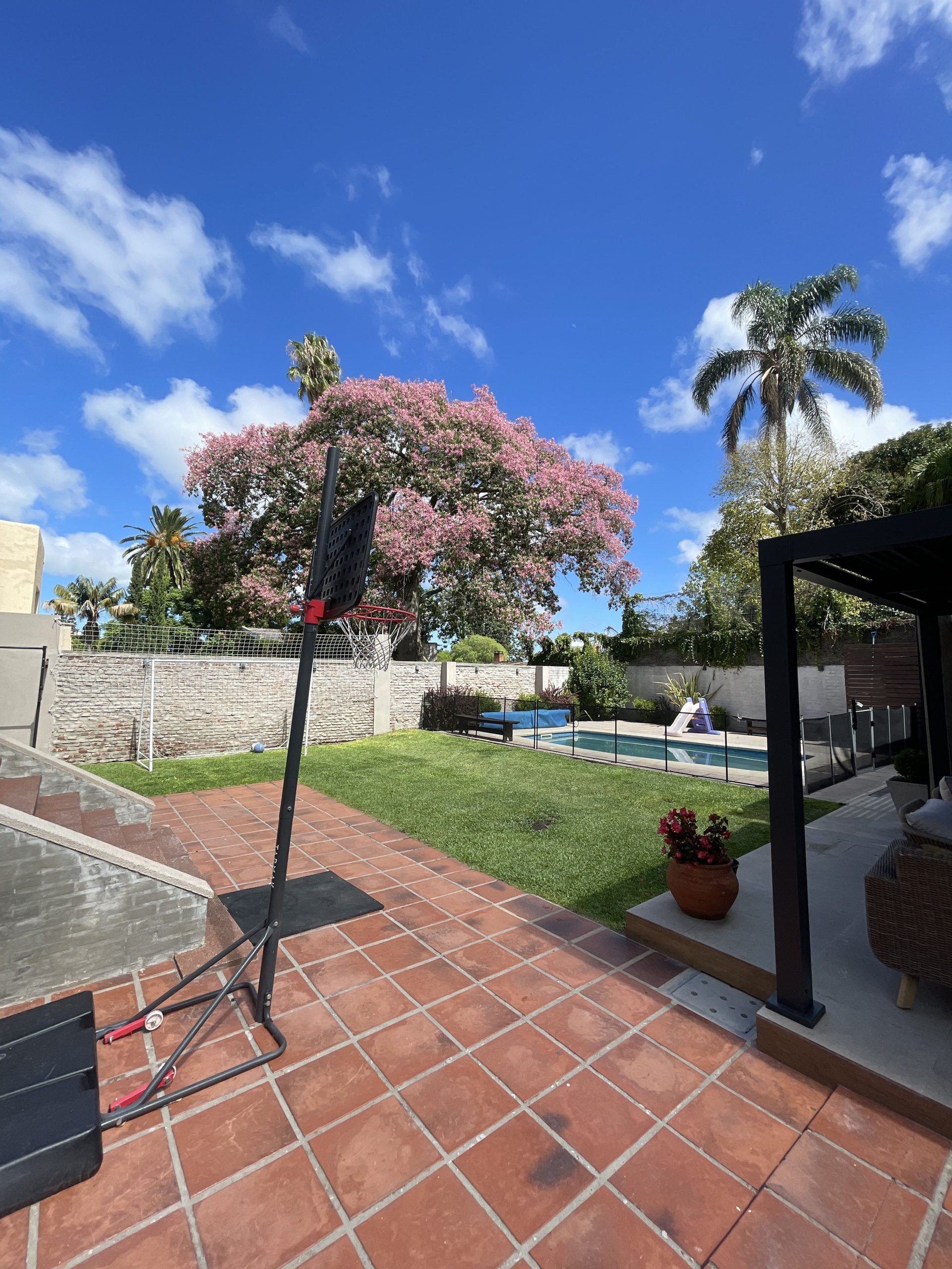 FONDO ENJARDINADO CON PISCINA CLIMATIZADA Y PARRILLERO TECHADO.