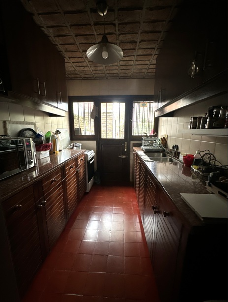 COCINA DEFINIDA CON BUENA CAPACIDAD DE GUARDADO. SALIDA A PATIO CON PUERTA DE MADERA Y DOBLE REJA.